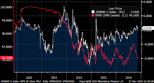 Volatility at its best. The past 18 months have been a rollercoaster ride for SFR8, with multiple 100+ basis point swings in both directions.