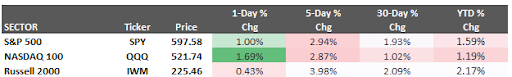 The Energy, Financial, Industrial, and Materials sectors are the YTD outperformers.