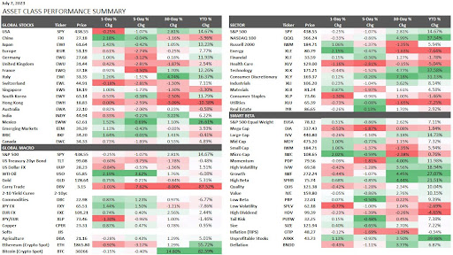 This performance chart tracks the daily, weekly, monthly, and yearly changes of various asset classes, including some of the most popular and liquid markets available to traders.