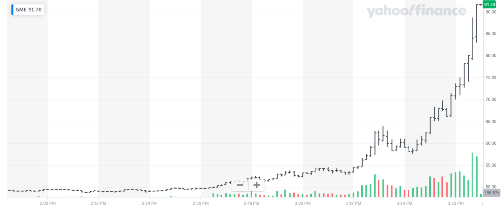 It looked like GameStop had found a value area in the $45-$55 range since its spike up to $483 back in late January. As it turned out, the Wallstreetbets Reddit fellowship wasn’t quite finished YOLO’ing, and a late-day push sent the retail gaming stock ripping higher to close up more than 100% on Wednesday.