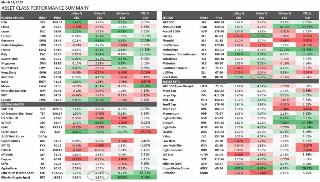 Losers were Natural Gas -52%, U.S. Regional Banks -24%, Oil -8%, Biotech -6%, and Energy -5%