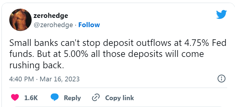 But as solvency fears fade, a second stage is emerging, driven by interest rate differentials primarily between regional banks that cannot match the Fed Funds rate.