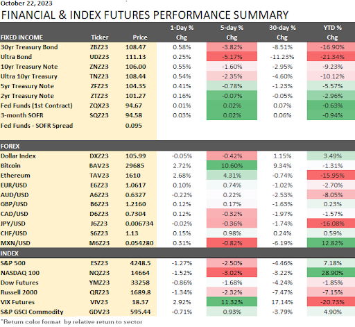 These performance charts track the daily, weekly, monthly, and yearly changes of various asset classes, including some of the most popular and liquid markets available to traders.