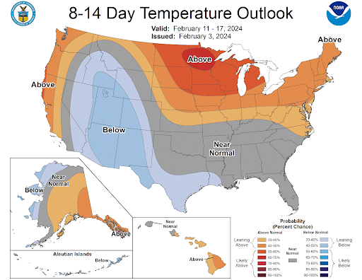 However, the 6-10 and 8-14day weather reports call for above or near-normal temperatures.