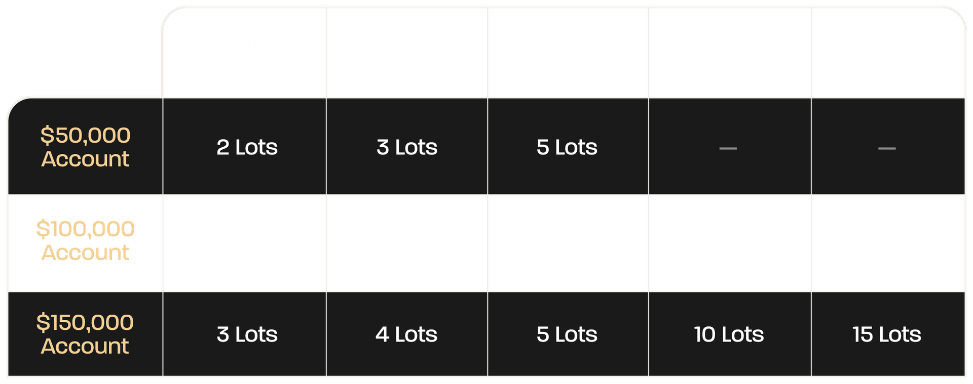 Your contract limit is based on your account balance and follows the Scaling Plan. You’ll start at the lowest level of that plan with the ability to increase your position size based on your profits.