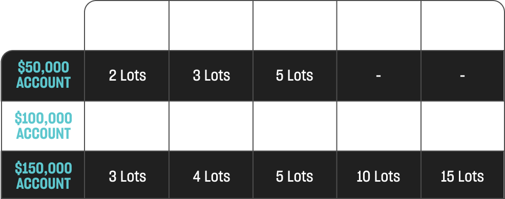 Your contract limit is based on your account balance and follows the Scaling Plan. You’ll start at the lowest level of that plan with the ability to increase your position size based on your profits.