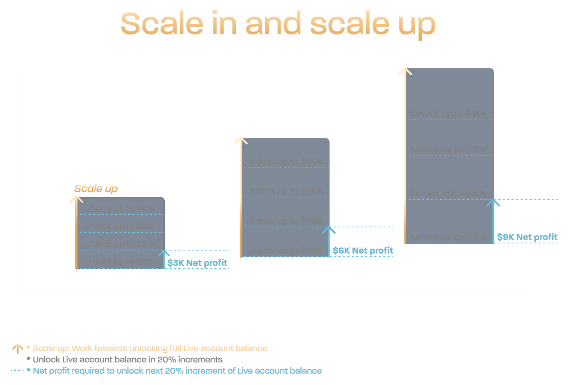 - Additional balance access is released as you achieve defined profit milestones